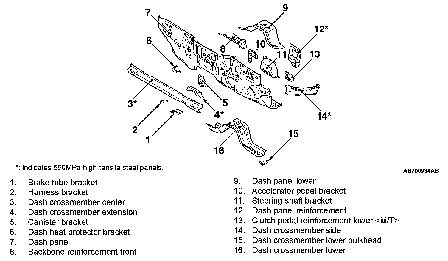 class high tensile strength steel panels have been adopted for the dash crossmember center, dash crossmember extension, dash panel reinforcement and dash crossmember side to improve the body rigidity.