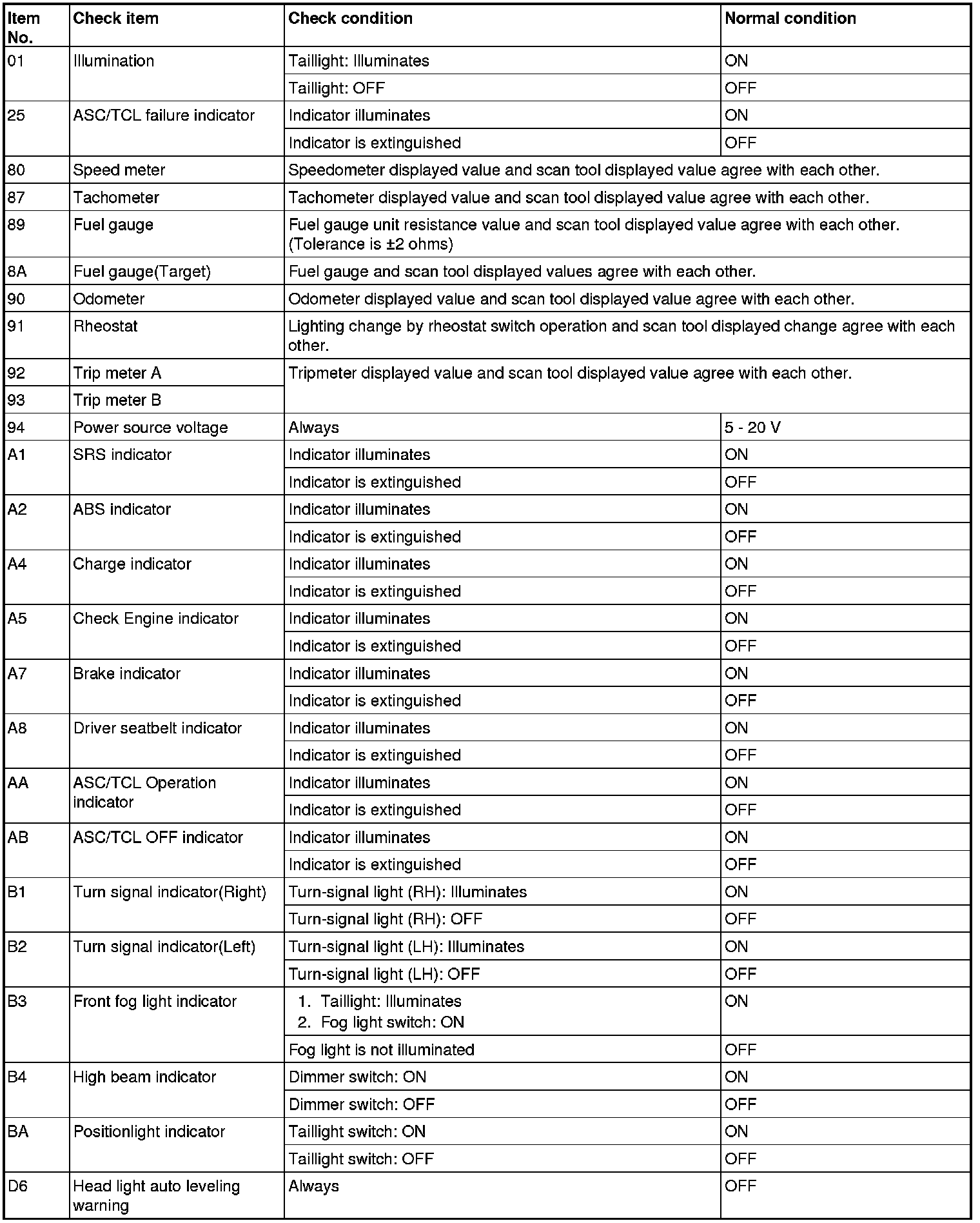 For some information result read out by the ECU, the specific items may not be displayed.