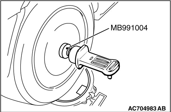 Tighten the wheel alignment gauge attachment (special tool: MB991004) to the specified torque, then perform measurement.