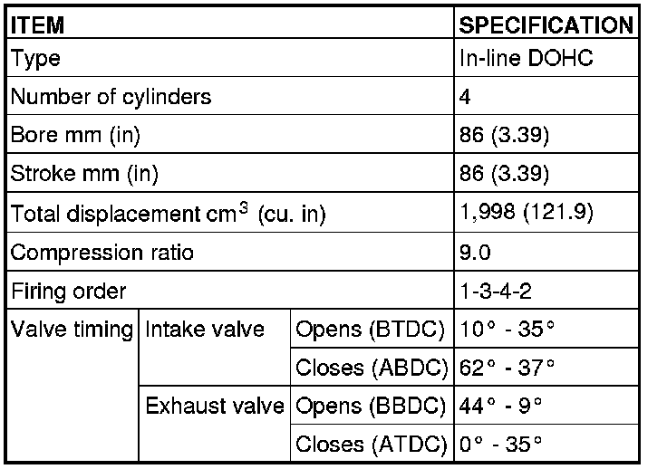 The 4B11 (2.0 L) engine is an in-line four-cylinder engine. The cylinder numbers are assigned as 1-2-3-4 from the front of the engine (timing chain side). The