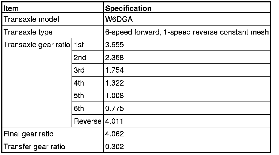 GEAR RATIO TABLE