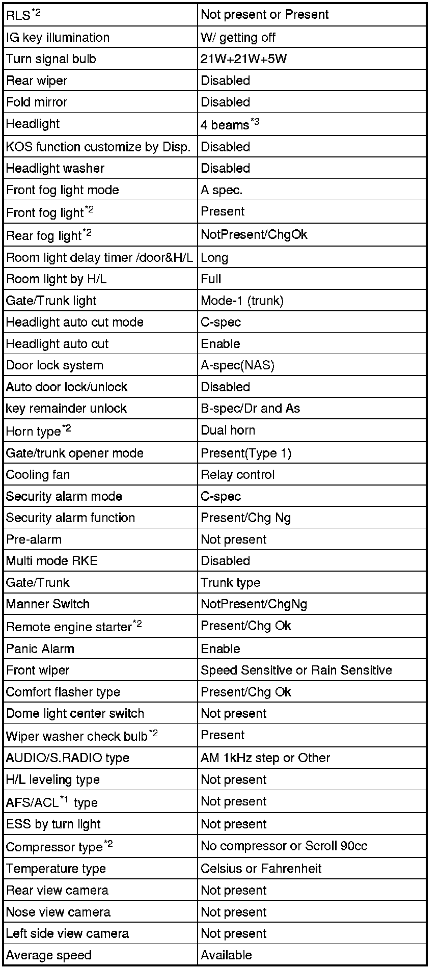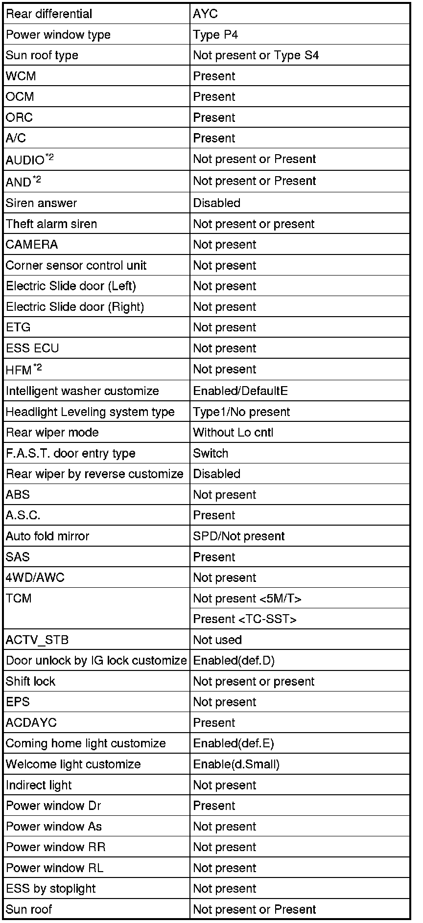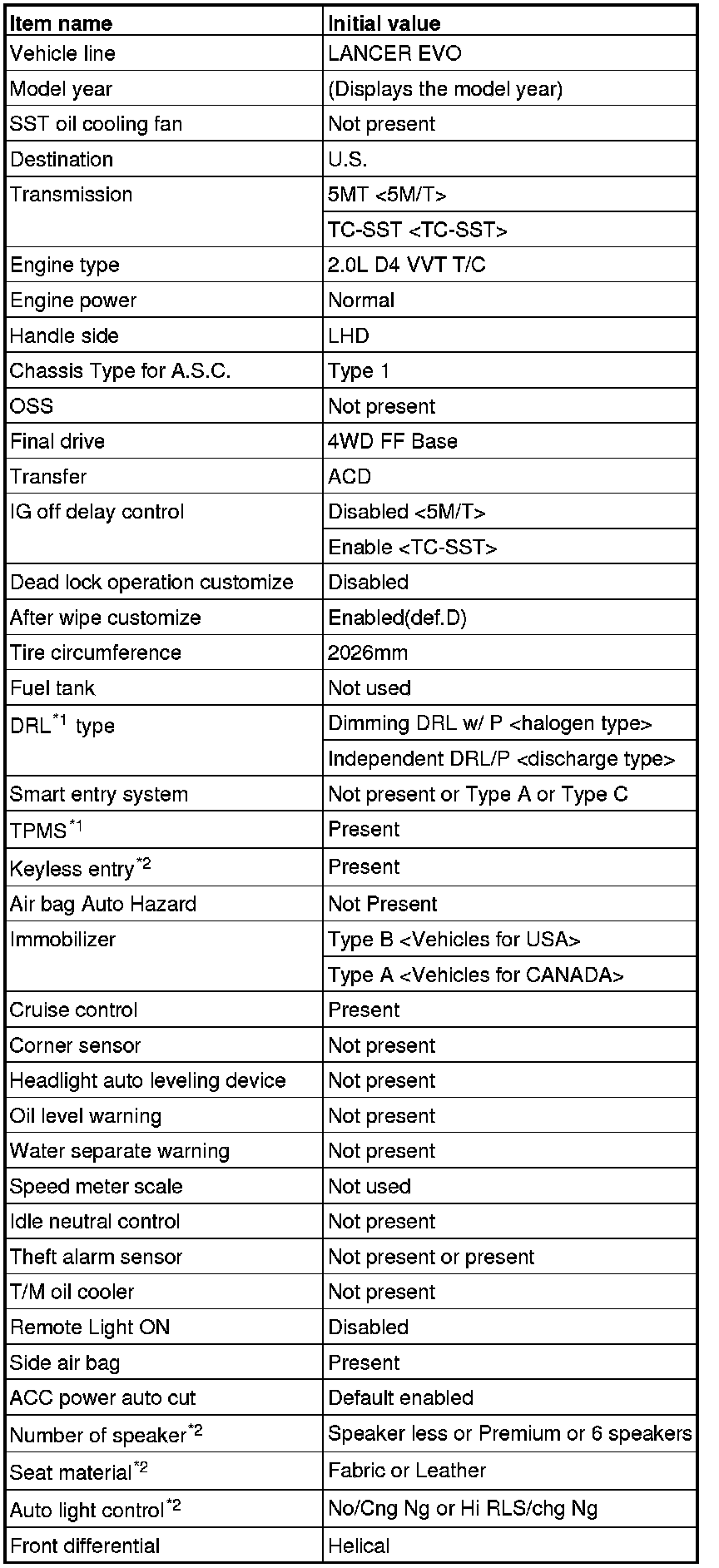 - *2: The setting can be changed by the option coding. Refer to .