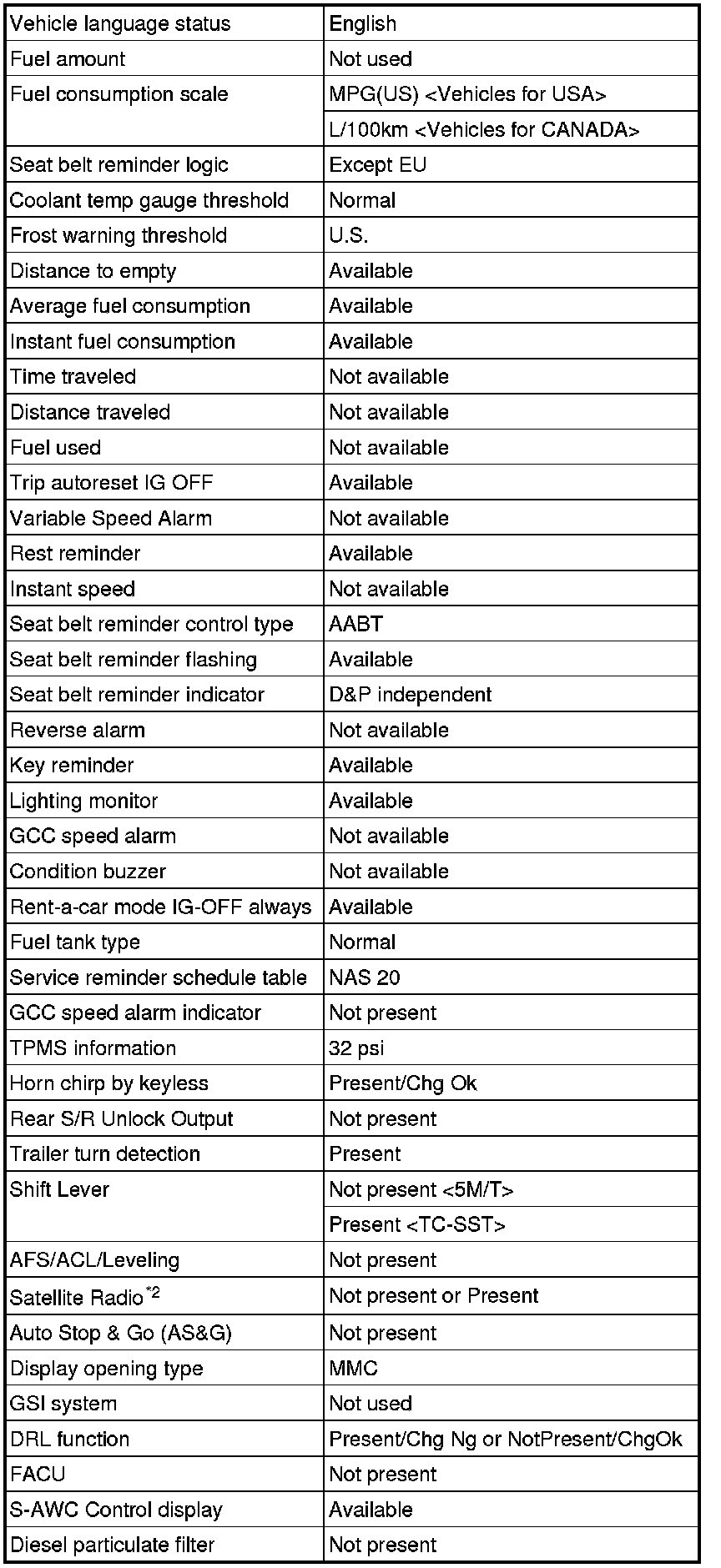 - *1: TPMS is an abbreviation of Tire Pressure Monitoring System, DRL of Daytime Running Light and AFS of Adaptive Front lighting System.