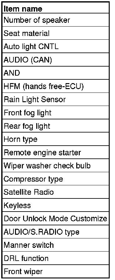 - If there is any item indicated by the option coding after equipment change, set ETACS-ECU so that the option coding data corresponds with the equipment content. Functions and systems do not work normally if the setting does not correspond with the equipment.