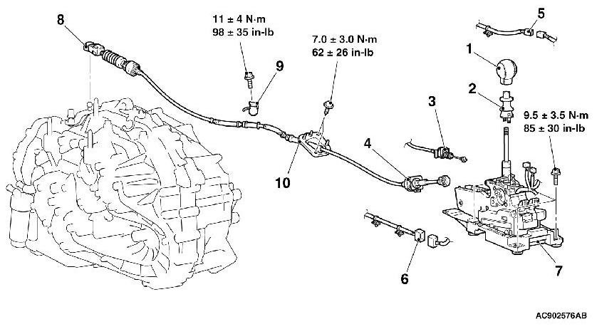 - The lock position of transaxle control cable is automatically adjusted by a spring.