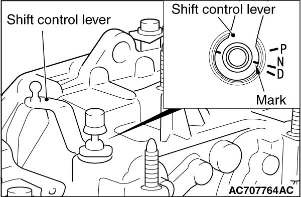 2. Operate the lever so that the shift control lever positioning mark is set to the N position.