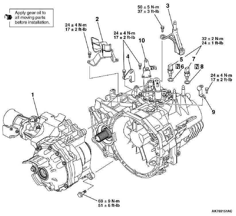 Specified sealant: Mitsubishi Part No. MD997740 or equivalent