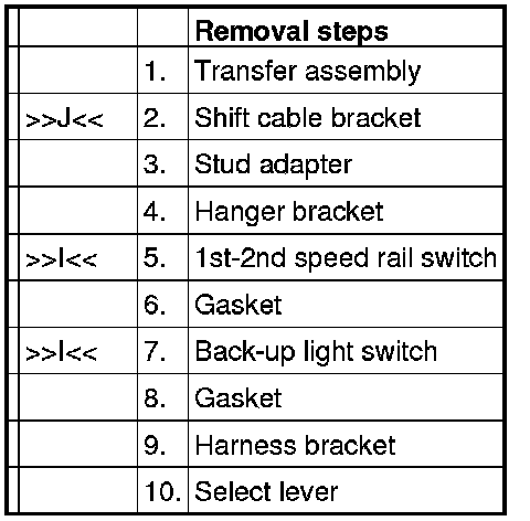 ]]I[[ BACK-UP LIGHT SWITCH / 1ST-2ND SPEED RAIL SWITCH INSTALLATION
