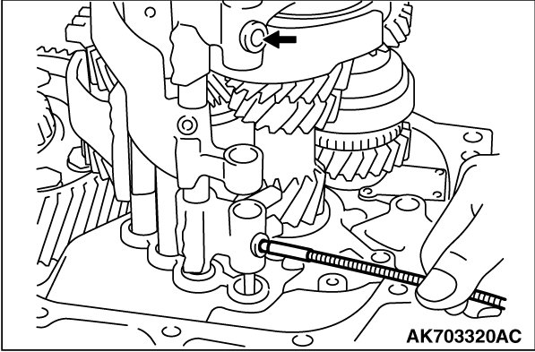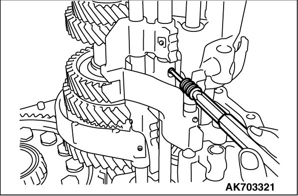 Knock the spring pin out of the 3rd-4th speed shift fork from the illustrated direction.