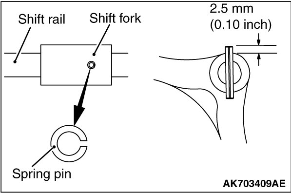 Install the spring pin to the shift rail so that the slit of the spring pin aligns with the center axis of the rail as shown.