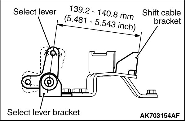 6. Position the select lever bracket so that the distance between the select lever and shift cable bracket is within the standard value. Then fix the bracket securely.