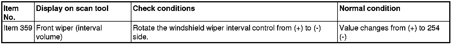 INSPECTION PROCEDURE 5: The windshield intermittent wiper interval cannot be adjusted by operating the windshield intermittent wiper interval control switch.