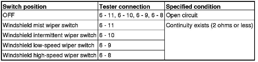 5. Check to see that the windshield wiper motor runs at low speed and then stops at the automatic stop position.
