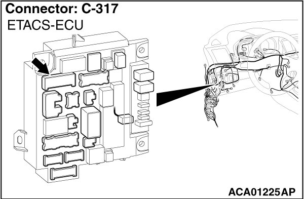 STEP 1. Check ETACS-ECU connector C-317 for loose, corroded or damaged terminals, or terminals pushed back in the connector.