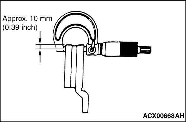 2. Use a micrometer to measure the brake disc thickness at minimum eight points which are 10 mm (0.39 inch) inward from its circumference.