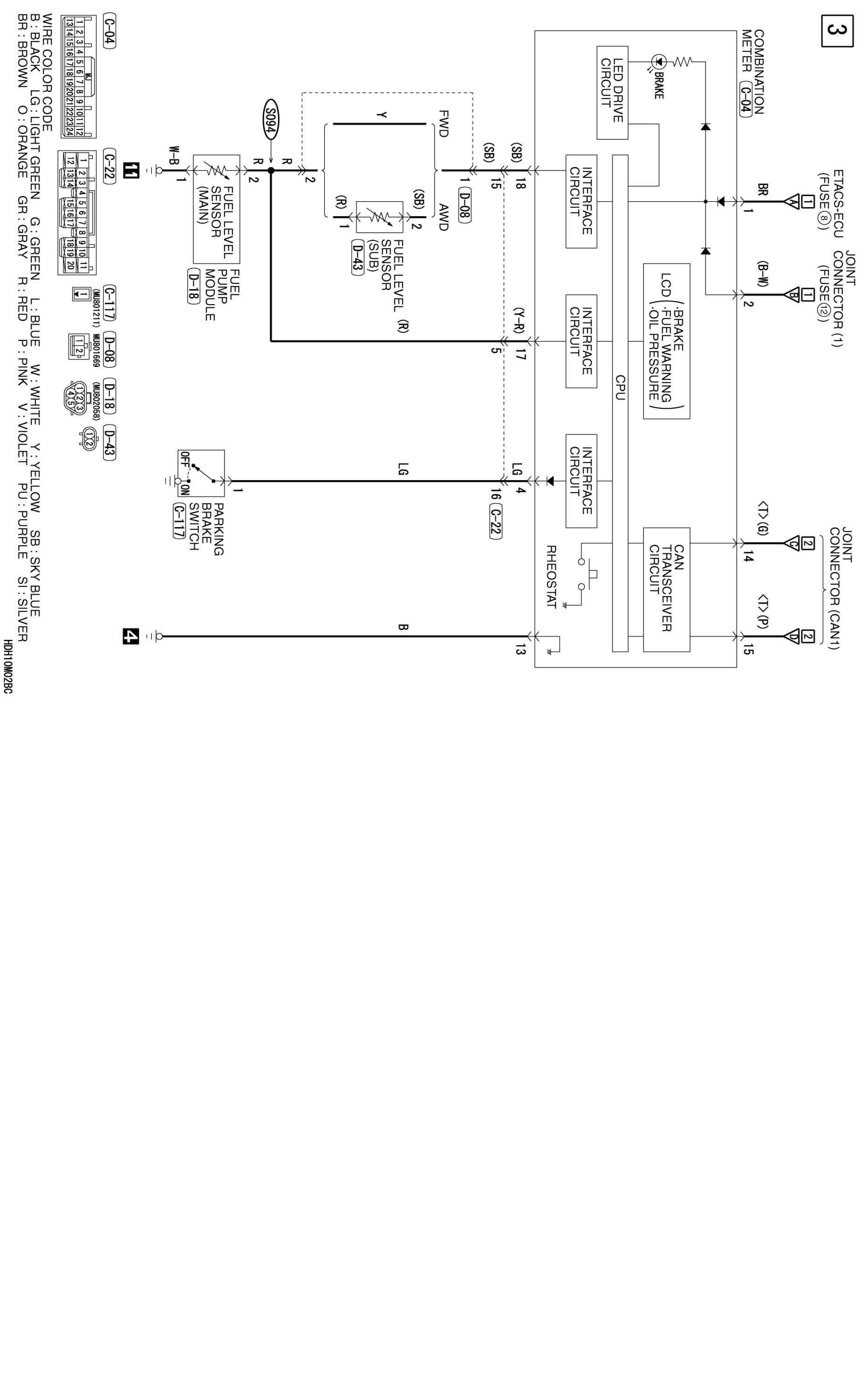 BRAKE WARNING LIGHT, FUEL WARNING LIGHT AND OIL PRESSURE WARNING LIGHT [NON-TURBO]