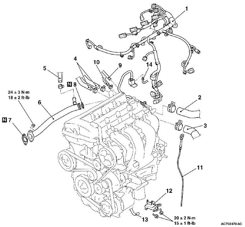 3. Install special tool MB991454, MB991928 or MB991895 which was installed for supporting the engine and transaxle assembly when the timing chain was removed (Refer to Removal and Replacement.)