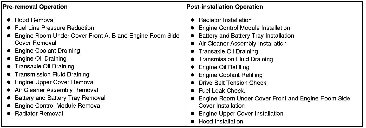2. Remove the special tool for holding the engine assembly, which has been set when the transaxle assembly is removed.