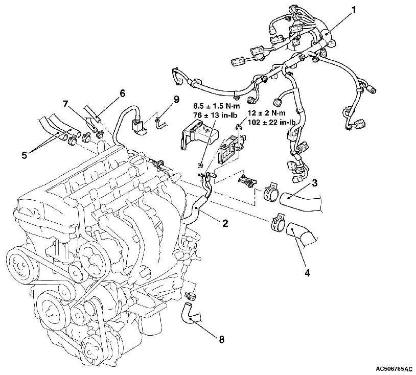 When the engine assembly replacement is performed, use scan tool MB991958 to initialize the learning value Initialization Procedure For Learning Value In MFI Engine.)