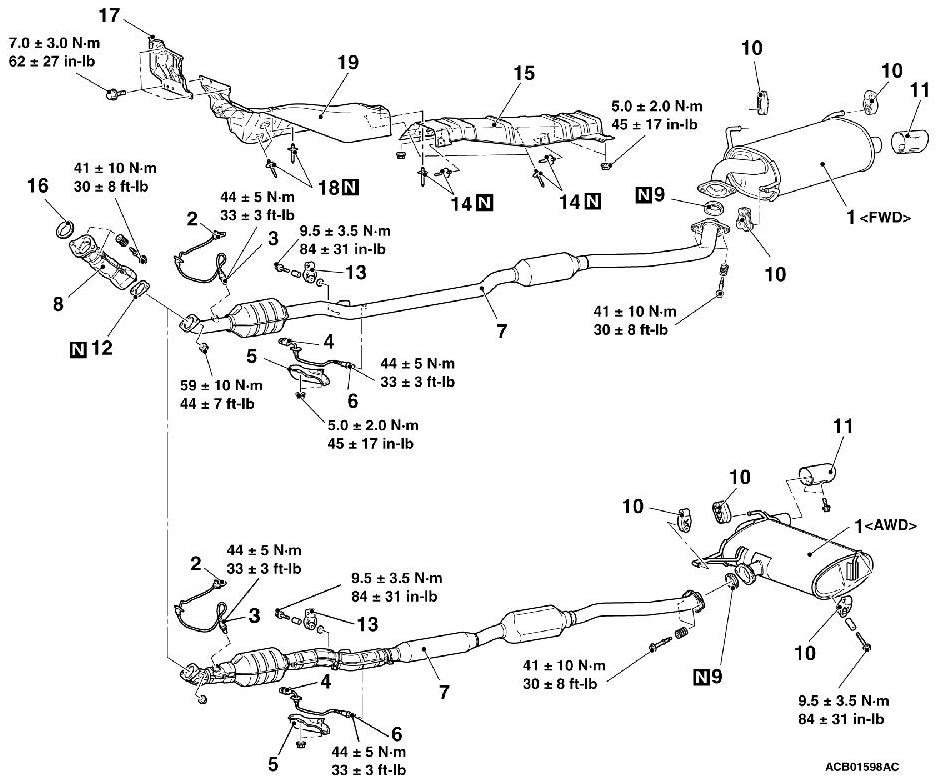 Tighten the heated oxygen sensor to the specified torque by using special tool MB991953.
