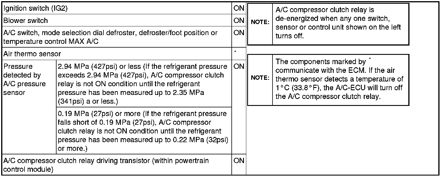 A/C Compressor Clutch Relay ON Conditions