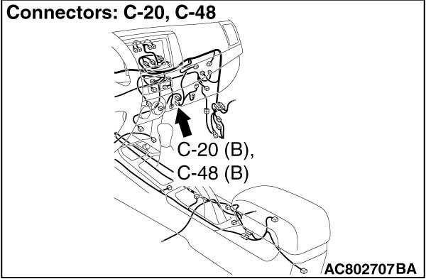 (3)Check the wiring harness between joint connector (CAN1) C-06 (terminal 19) and A/C-ECU connector C-20 or heater control unit connector C-48 [vehicles without A/C] (terminal 12)