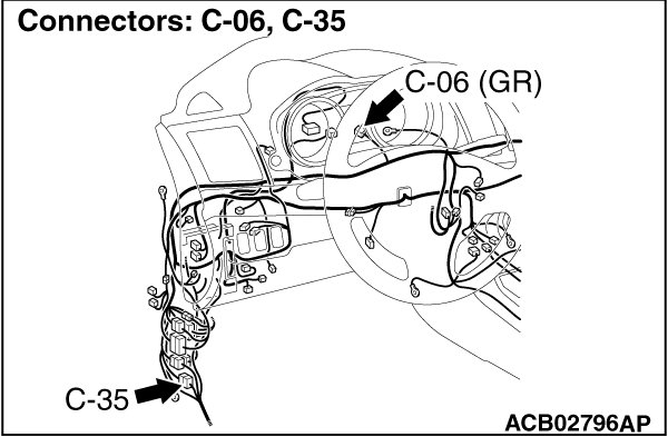 STEP 1. Check joint connector (CAN1) C-06, occupant classification-ECU connector D-35, D-35-2 and intermediate connector C-22 for loose, corroded or damaged terminals, or terminals pushed back in the connector.
