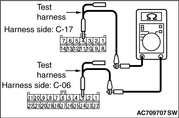 STEP 2. Check the wiring harness between joint connector (CAN1) C-06 and satellite radio tuner connector C-17 for open circuit.