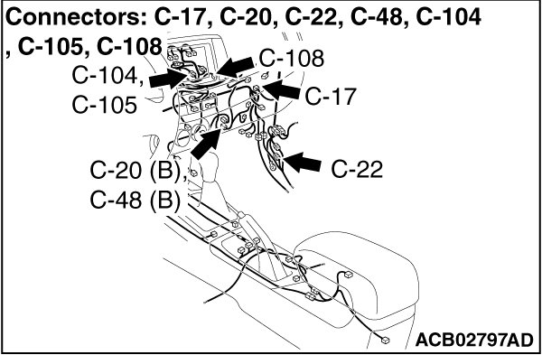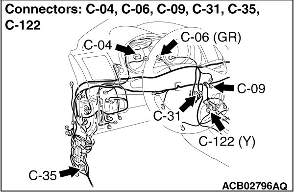 (1)Disconnect ETACS-ECU connector C-301, and check that there is continuity at the harness side of ETACS-ECU.