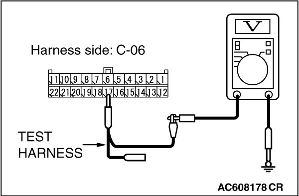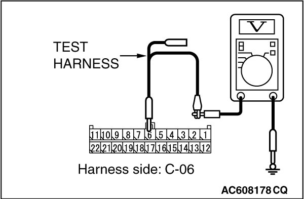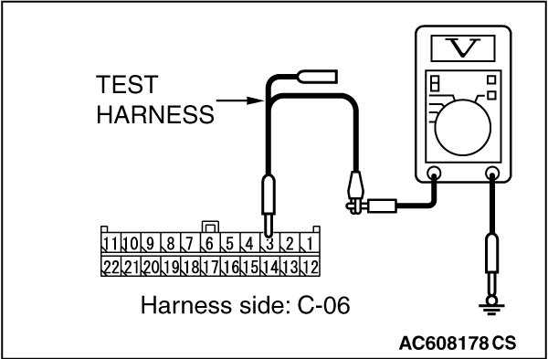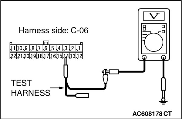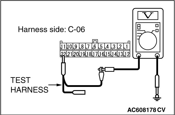 STEP 22. Check the wiring harness between joint connector (CAN1) C-06 and ETACS-ECU connector C-301 for a short to power supply. Measure the voltage at joint connector (CAN1) C-06.