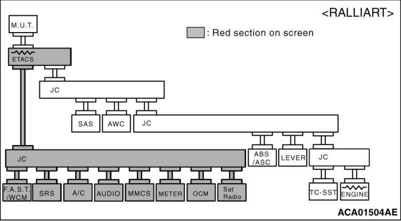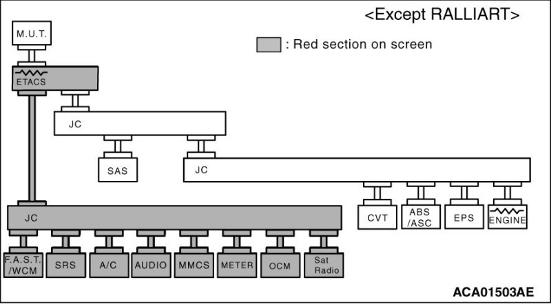 (3)Diagnose CAN bus lines, and check if the scan tool MB991958 screen is as shown in the figure.