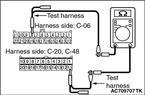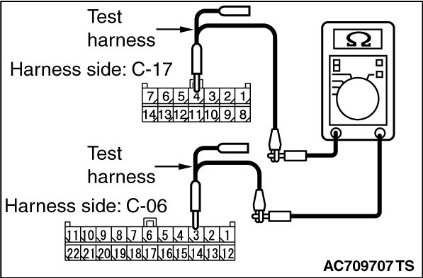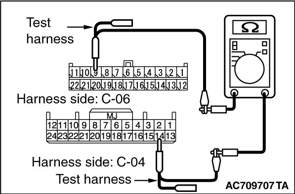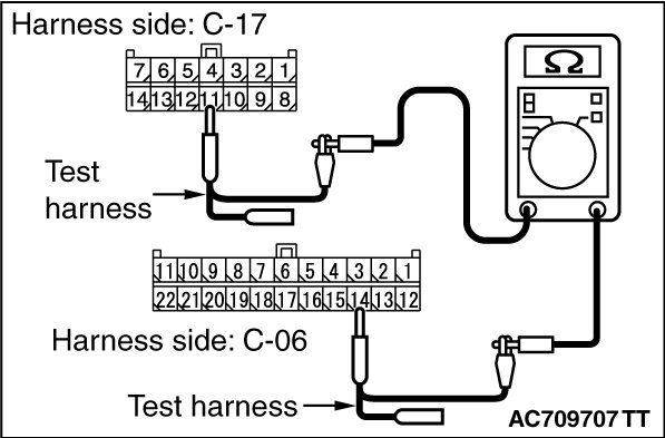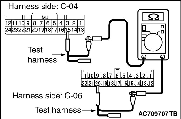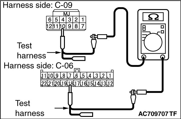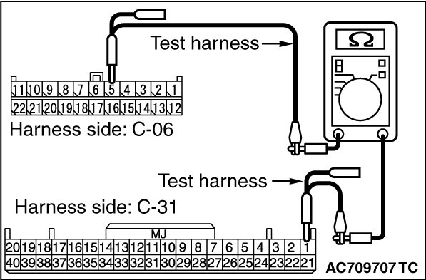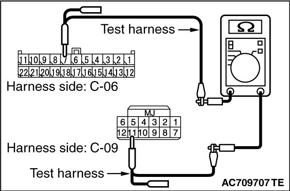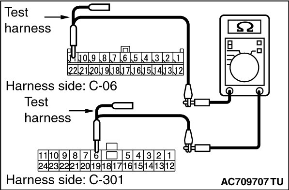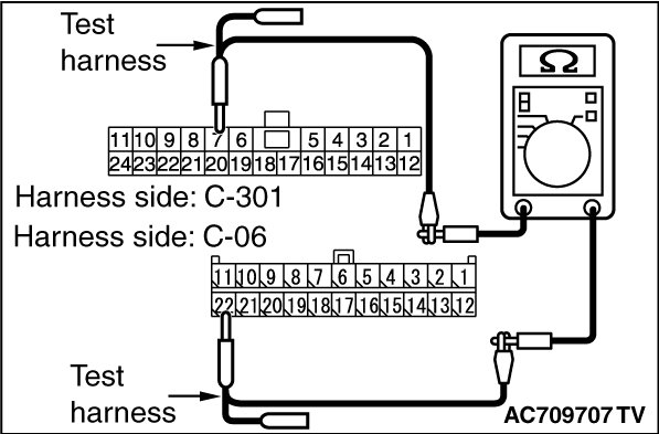 (3)Check the wiring harness between joint connector (CAN1) C-06 (terminal 22) and ETACS-ECU connector C-301 (terminal 7)