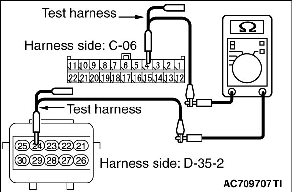 STEP 28. Check the wiring harness between joint connector (CAN1) C-06 and occupant classification-ECU connector D-35-2 for line-to-line short. Measure the resistance at joint connector (CAN1) C-06.