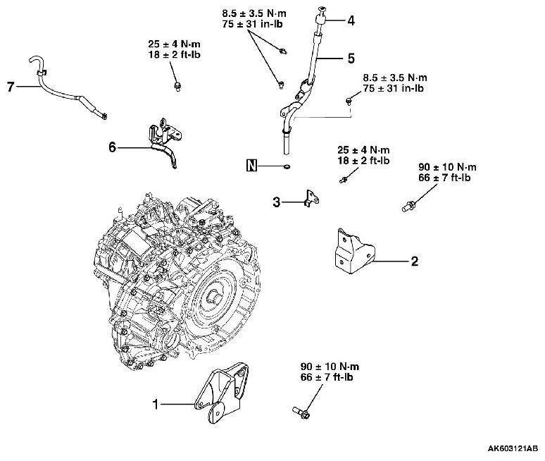 5. Remove the control cable bracket and breather hose from the transaxle.