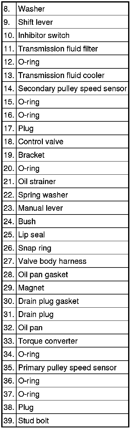 Use of transmission fluid other than specified will impair driveability and CVT endurance, and may lead to breakage of CVT.