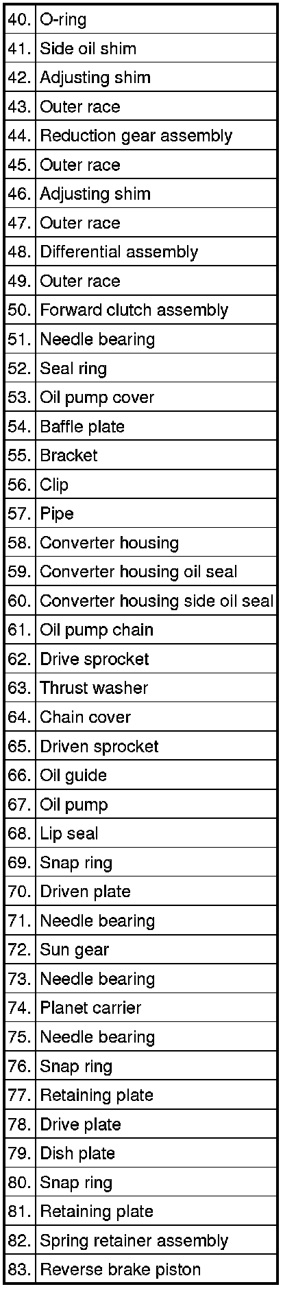 19. Using cylinder gage etc., measure the mounting bore diameter of reduction gear bearing outer race at the converter housing side; if the standard value is not satisfied, then replace the converter housing.