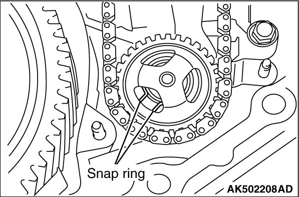29. Expand the snap ring, and remove the driven sprocket, oil pump chain, and drive sprocket.