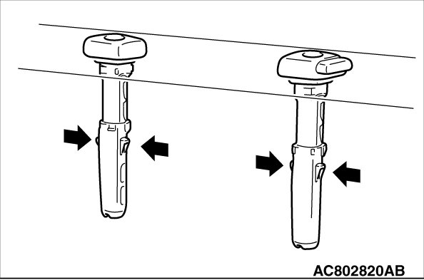 Use special tool MB990784 as shown to remove the height adjuster lever cover.