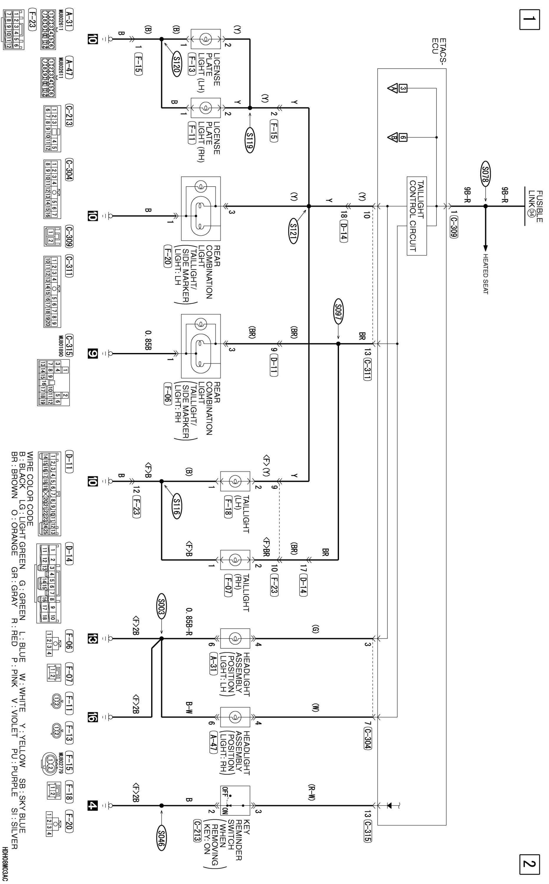 TAILLIGHT, POSITION LIGHT, REAR SIDE MARKER LIGHT, LICENSE PLATE LIGHT AND LIGHTING MONITOR TONE ALARM [LANCER]