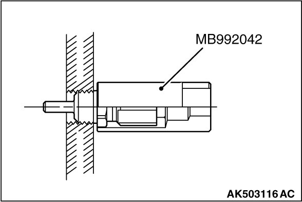 1. Drain engine coolant, then remove the engine coolant temperature sensor using the special tool MB992042 (engine coolant temperature sensor wrench).