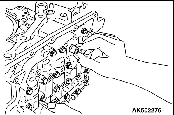 Slide the control valve assembly from the bottom, and install it on the transaxle case.