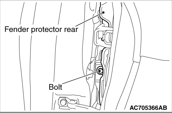 2. Slide the fender protector rear to access and remove the bolt as shown in the illustration.
