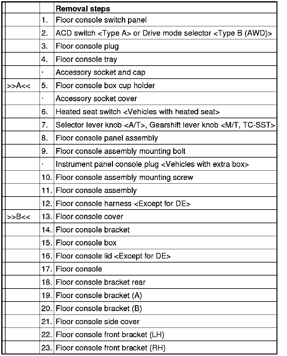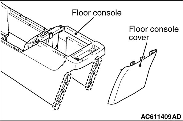 Floor console rear ends (shown in the dotted lines) may damage when removing the floor console cover. You can neglect this damage and floor console rear is reusable.
