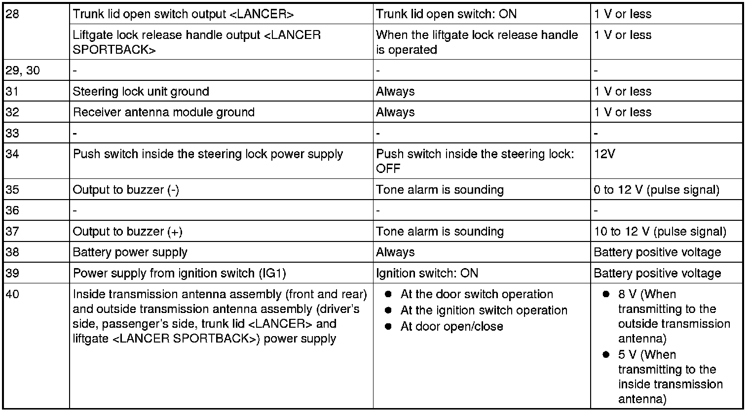 Pinout Values and Diagnostic Parameters