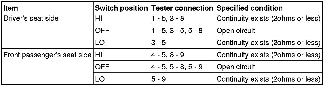 CONTINUITY TEST OF HEATED SEAT SWITCH