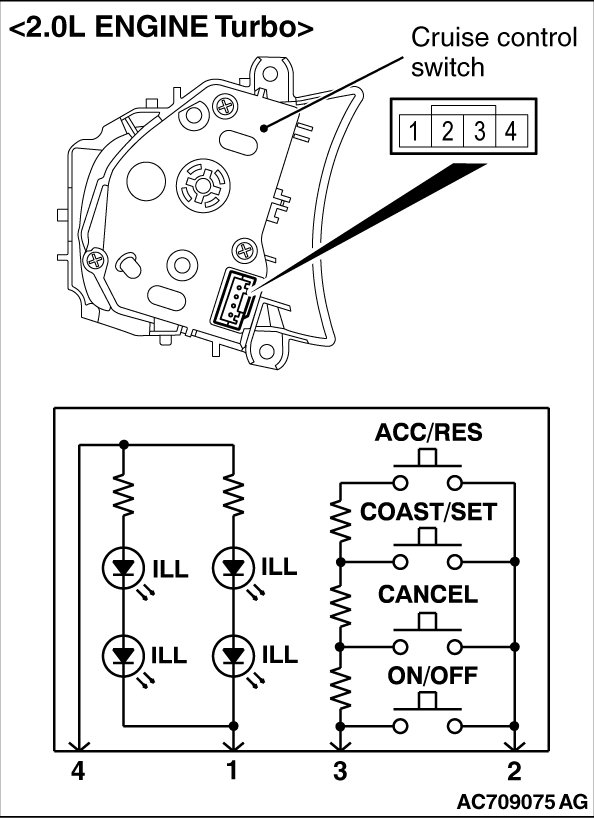 1. Remove the cruise control switch (Refer to Service and Repair) [2.0L ENGINE Non-turbo, 2.4L ENGINE]
