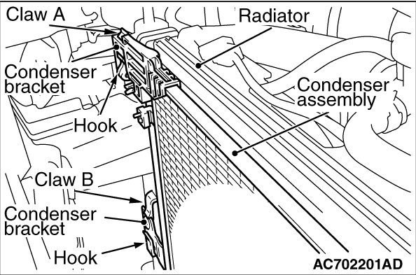 2. Lift the condenser while pressing the claw A and remove it.