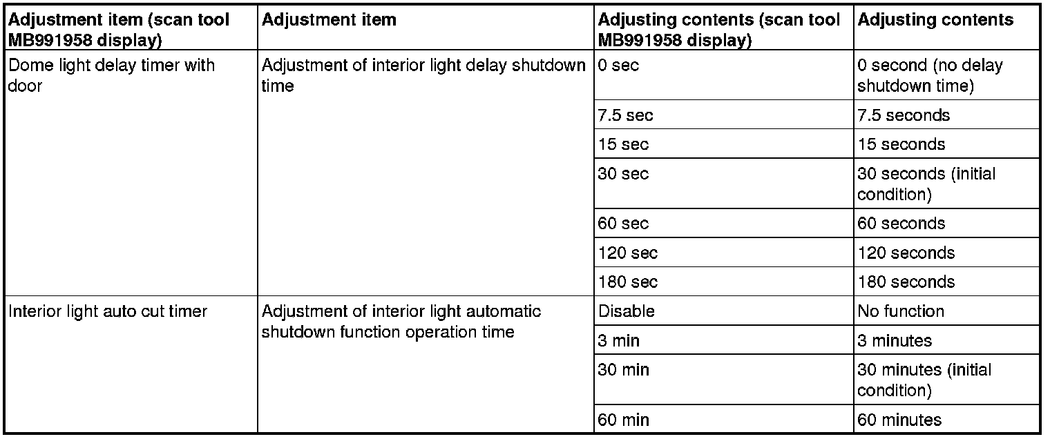 By operating the ETACS system or MMCS of scan tool MB991958, the following functions can be programmed. The programmed information is held even when the battery is disconnected.