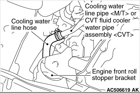 4. Disconnect the cooling water line hose and drain the engine coolant in the water jacket.