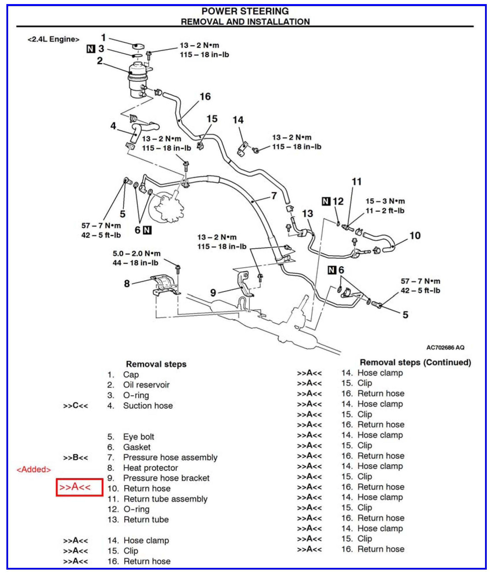 2008 - 2010 Lancer/Lancer Sportback - Group 37: Power Steering Hoses Removal and Installation
